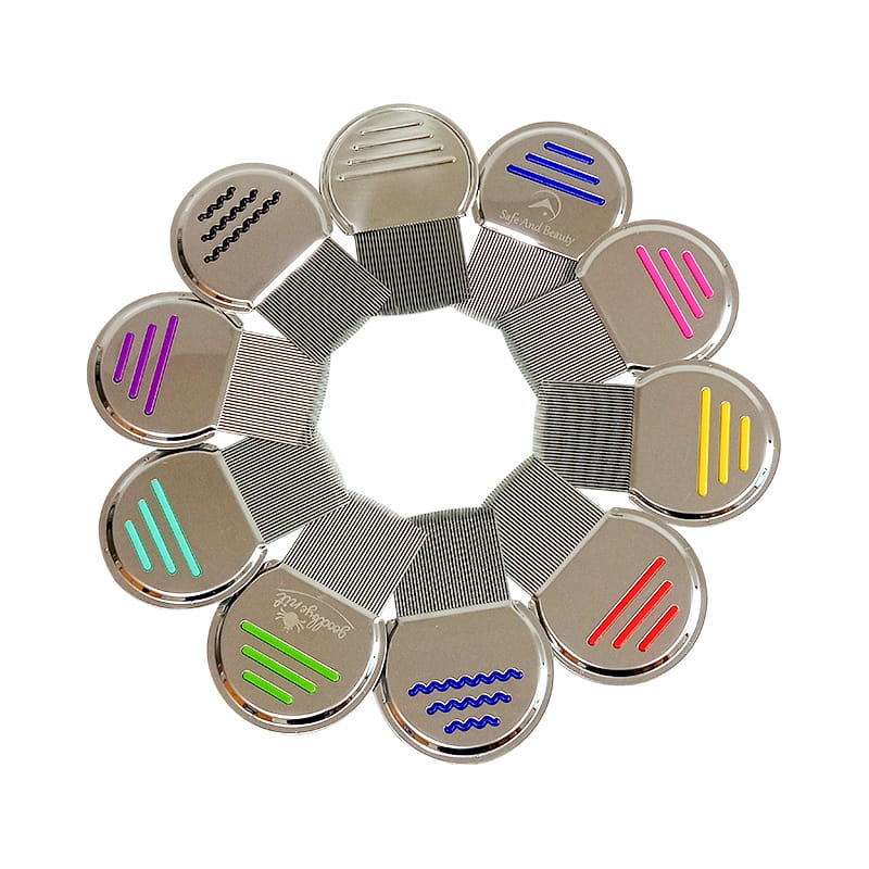 2013 Ms. Fu design, needle all laser welding, full inspection process to ensure the overall quality of the comb. The needle spacing is 0.08mm-0.09mm, and the fine seam is suitable for removing lice and larvae from hair and eggs, with high accuracy. The comb is made of high quality stainless steel, the needle its smooth, rounded teeth are gentle on the scalp to minimize irritation, and the flower needle's grain is effective in catching and removing lice and lice. Suitable for all hair types, this comb is an essential tool for families seeking a non-toxic, thorough way to treat lice. Compact and easy to clean, this delousing comb provides a hygienic solution that can be used at home and on the go. Experience peace of mind with products designed for good lice removal and long-lasting performance. 304 stainless steel ensures durability and rust resistance, making it a reliable tool for repeated use. The ergonomic handle is designed for a comfortable grip, allowing for easy handling and reducing hand fatigue during use.